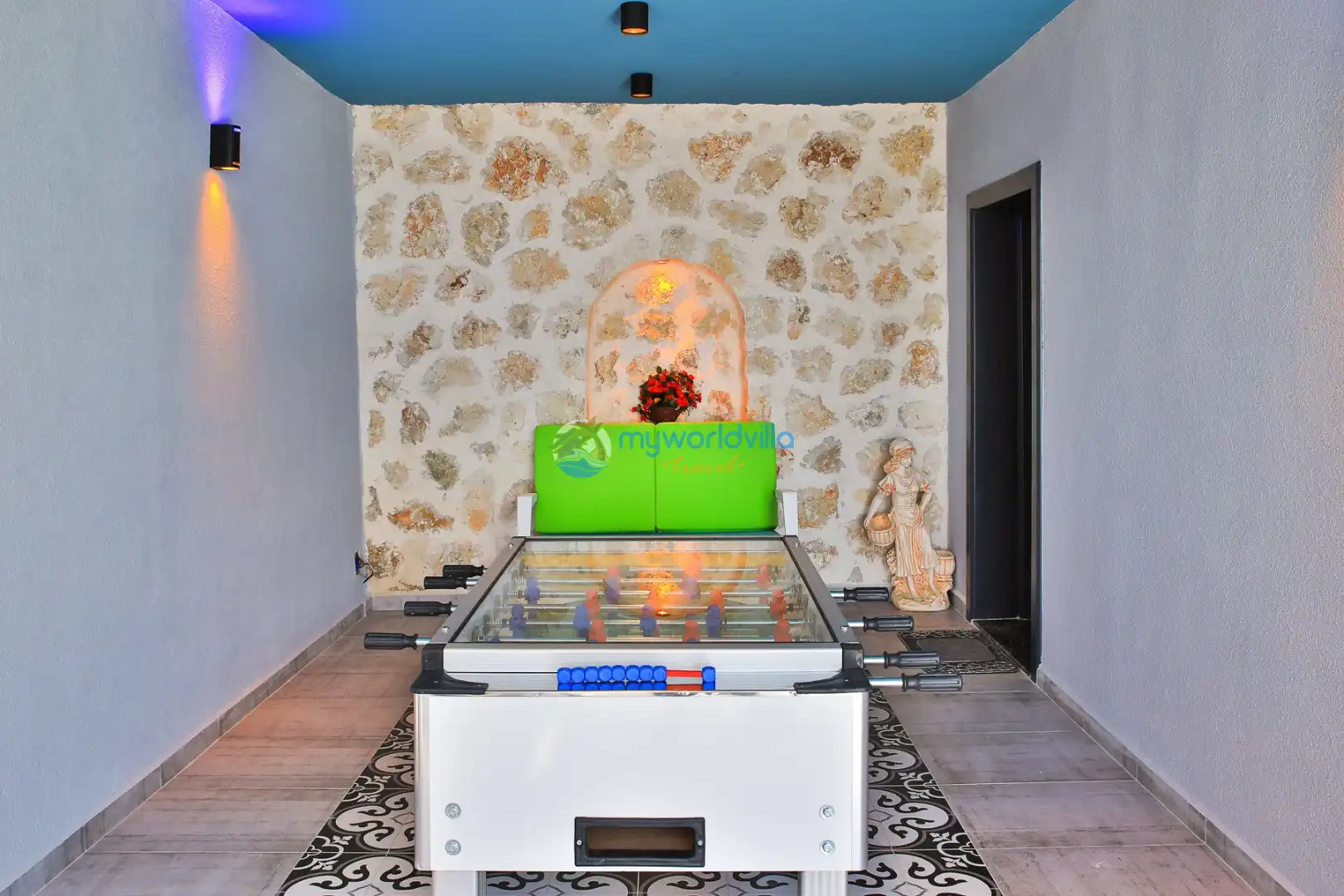 Ekstralar : Villa misafirlerimize temiz bir şekilde teslim edilmektedir. Bahçe & havuz bakım ve temizliği günde 1 defa yapılmaktadır. Villa içerisinde kablosuz internet mevcuttur. Salon ve yatak odaları klimalıdır. Villada ayrıca masa tenisi, langırt ve mini çocuk oyun parkı, 3 kişilik salıncak, bebek park yatağı ve sauna bulunmaktadır.